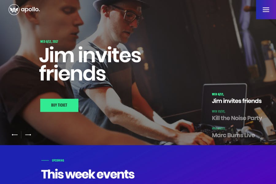 Apollo is a powerful & vibrant Events & Night Club WordPress Theme with a contemporary festive design. It is developed particularly for a nightclub, concert or music festival. The theme can also be a good choice for a bar, any party / event website. Apollo can be used for showcasing a DJ’s or a musician’s career and can be interesting for creating fans’ website.