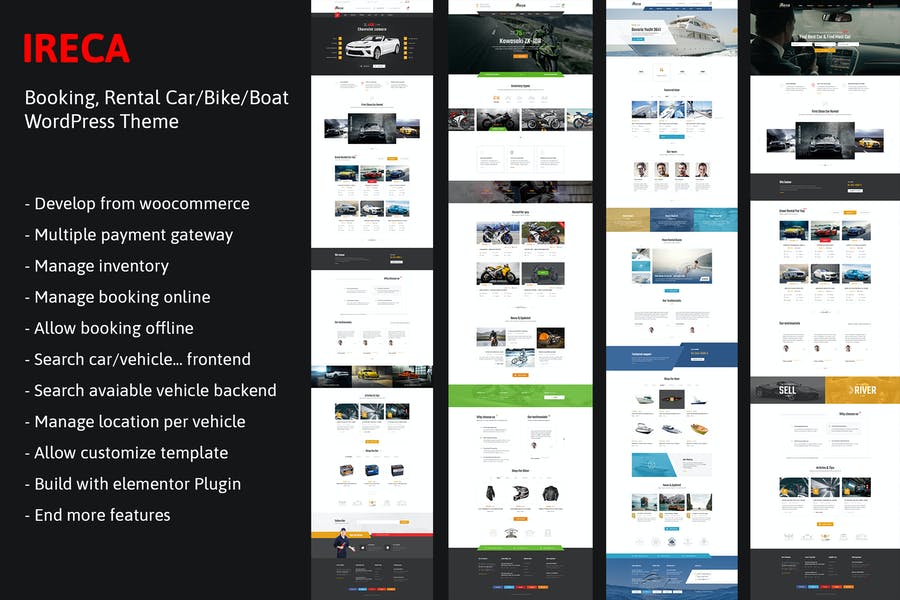 - 6 homepages: Car Rental, Boat Rental, MotorBike Rental, Search Rental, Video and Car Rental Landing Page