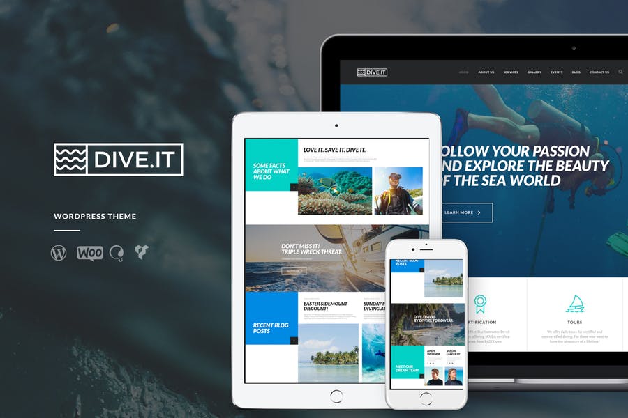 The theme has an intuitive visual interface and informative layout that looks wonderful on any platform, since it’s fully responsive and Retina ready. DiveIt is compatible with a bundle of premium plugins: WooCommerce, Revolution Slider, Essential Grid & WPBakery Page Builder to make it easy for you to setup and manage your Scuba Diving School website.