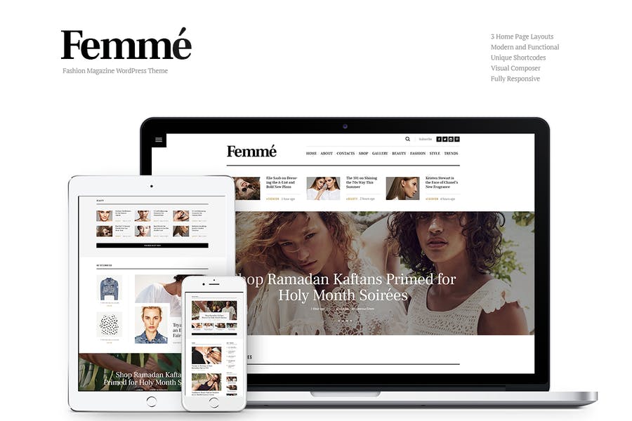 Fashion Blog WordPress Theme plugins Due to the full theme’s compatibility with WooCommerce Femme is mind-blowing basis for a fashion magazine with an online fashion boutique, woman dress & clothes and online store of clothing and fashion accessories.