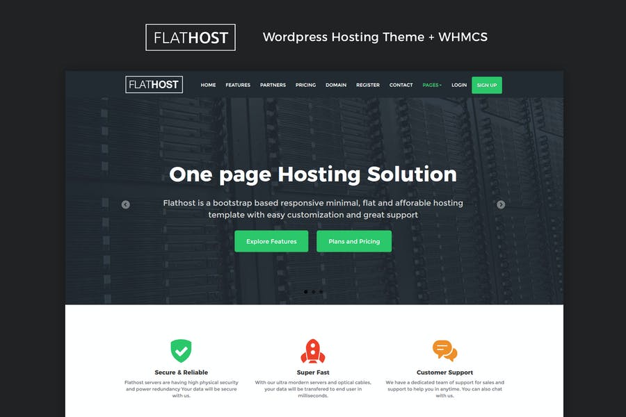 Flathost Responsive Hosting WordPress Theme with WHMCS. Designed with latest Bootstrap 3.2.0