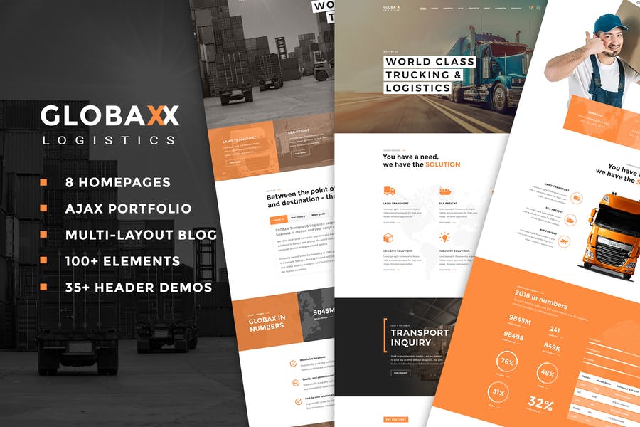 GLOBAX is a feature rich, complex yet easy to use Logistics & Transportation WordPress Theme with super flexibility, amazing eye-catching animation, fully responsive and unique design, complete demo ready with 1-click & much more…