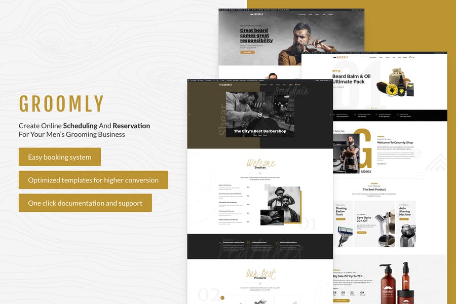 3 Templates Starter These Templates are highly optimized to helps you build your men’s grooming website easier so you can reach your business goal faster.
