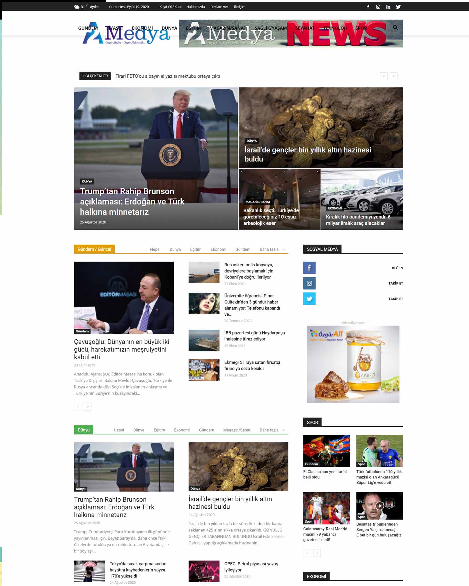 Hazır haber sitesi, yazılım altyapısı ve tasarımı önceden hazırlanmış, SEO uyumlu, yönetim paneli kolay kullanımlı, haber yayınına hazır olan web site paketidir. İçerisine haber, fotoğraf, video, yazar profili, reklam alanları gibi tüm gerekli modüller entegre edilmiştir.