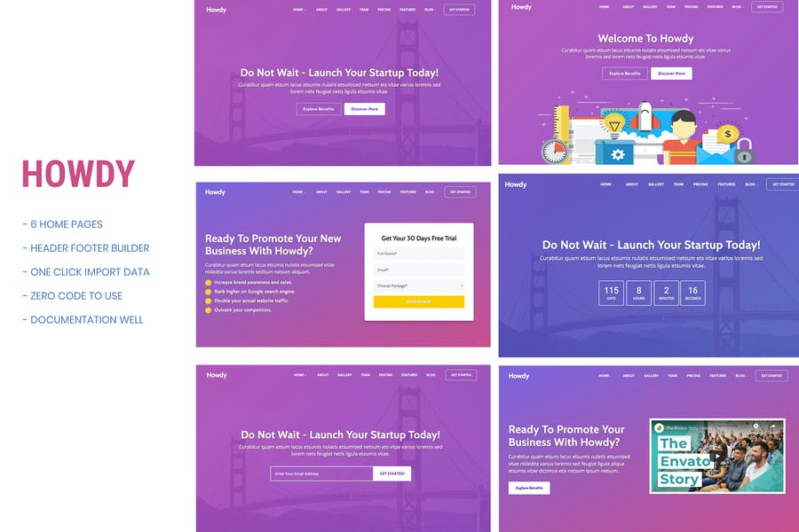 Howdy – Multipurpose High-Converting Landing Page WordPress Theme is a clean and modern high-converting landing page template, very easy to customize according to your needs. This landing page template can be used to promote web apps, mobile apps and all kind of marketing and startup websites. Quick and easy to setup.