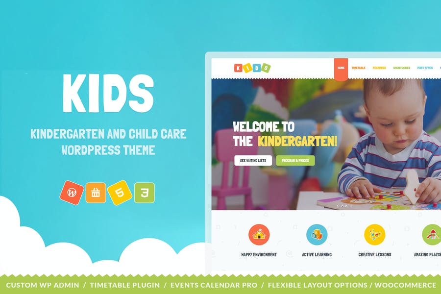 Kids is a kindergarten WordPress theme that can be used for preschool and day care institutions, children groups, play schools, kindergartens and kids stores. Ir has all the needed functionality for a kindergarten of a day care website, as well as for children goods store or child care blog. The theme has vibrant colors a kindergarten website needs, that are completely adjustable via admin panel. The theme is so easy in use, even a child can handle it!