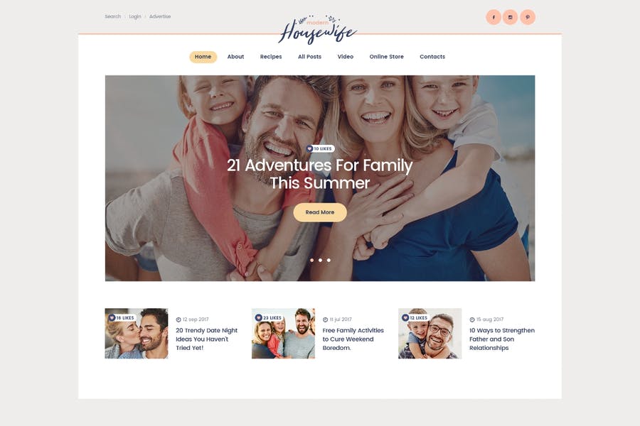 If you want to share how to be a housewife or to tell a story of a family life, then our theme Modern Housewife will be a splendid platform for your website. We believe, that the overall stylistics and the functionality of the theme will also be useful for you if you wish to build a pregnancy, childbirth or parenting blog.