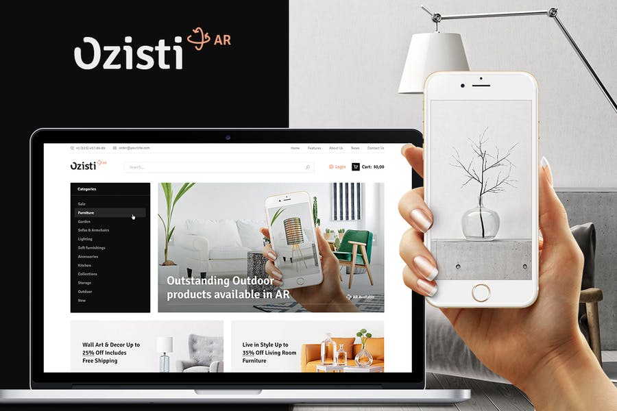 Ozisti is a revolutionary, stylish & modern Multi-Purpose WooCommerce WordPress Theme with Augmented Reality (AR) integration. It is an outstanding contemporary solution if you want to build more than just a simple WooCommerce store. It will suit any online shop: furniture firm, electronics, gadgets company, interior / exterior items agency, fashion clothes boutiques etc.