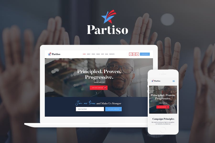 Powerful Political WordPress Theme 1.1.1 Partiso is a multi-purpose, modern & fresh Political WordPress theme. It’s designed for politician, political leader, activist, election campaign, political and social movements, political party or individual candidate website, political reviews, as well as any non-profit organization websites.