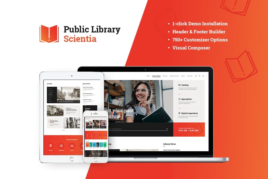 Scientia is a beautiful, fresh and clean Public Library & Book Store WordPress Theme. It has a modern and functional design built for a Library, Publishing House or Book shop. The theme can be suitable for any Publishing service business or Book-Author official website. Also, it can be interesting for Libraries, Literary Clubs, Digital and Media online stores.