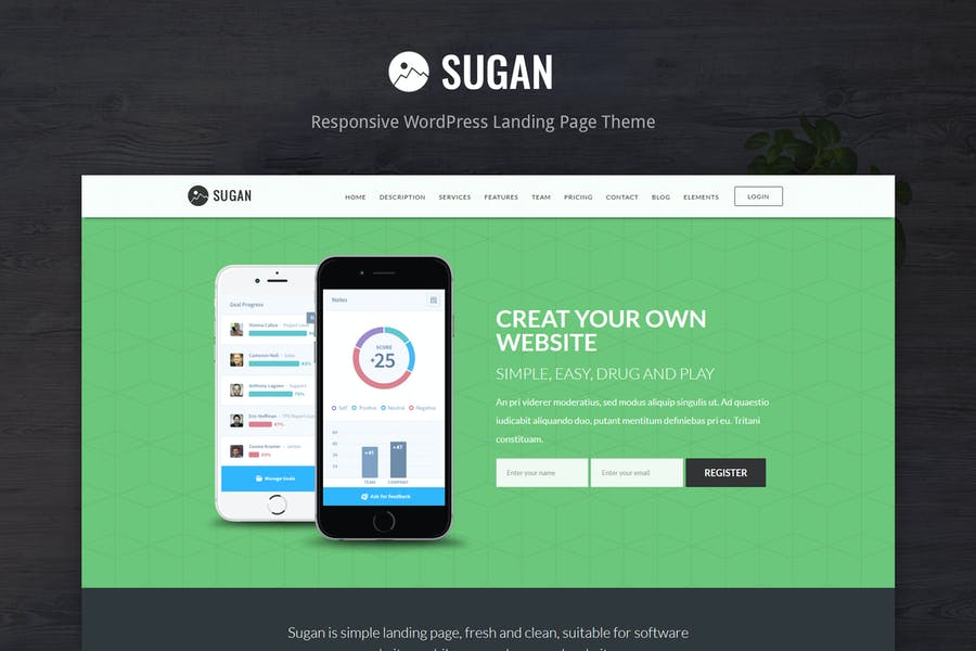 Sugan is modern and responsive landing page for download software website. This theme is very easy to customize with great code structure and you can build whatever you like with this Theme.